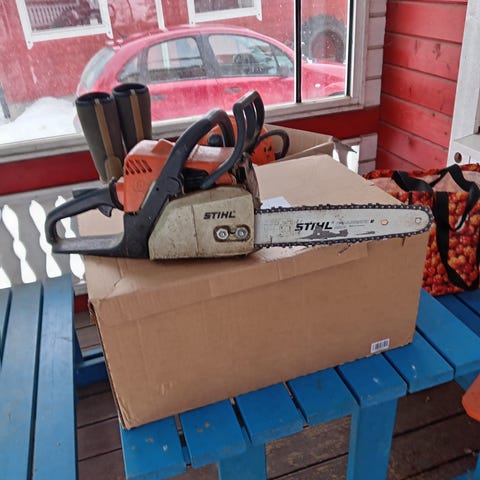 Toimiva sthil 024 av, ikää löytyy, kestävä saha esim. Polttopuun tekoon miksei mettälle myös. Laippa ja ketju 5v vanha