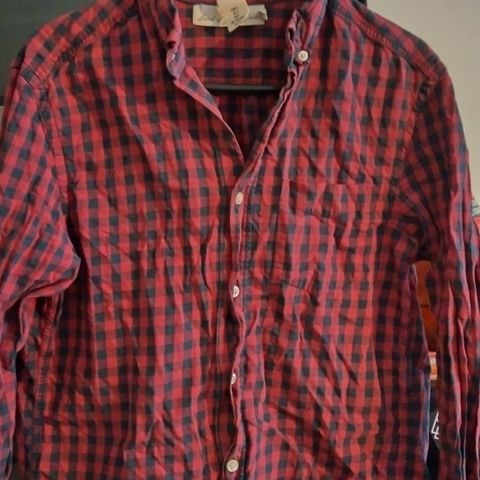 Pitkähihainen trikoopaita, mustat hihat,muu osa tumman luumun värinen tai ehkä vähän ruskean sävyinen, ylhäällä 3 nappia(varanappi mukana),kai-kai 53 , pit.67 cm