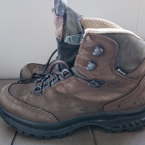 Hyvin vähälle käytölle jääneet Hanwag vaelluskengät. Kunto erinomainen - ja kenkä erinomainen. Todella tukevat kengät. Kokomerkintä on 36, ja minusta vähän niukkaa mallia. Itselleni hieman ahtaat ja siksi myyn. Voin myös vaihtaa kengät samanlaisiin astetta isompiin ja yhtä hyväkuntoisiin.