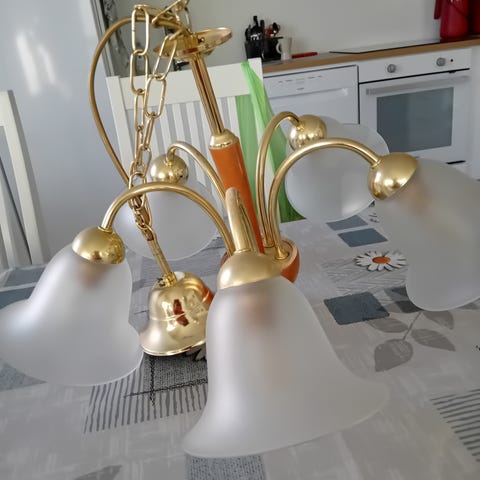 Kuvat eivät tee oikeutta tälle erittäin tyylikkäälle valaisimelle, jonka tyylikkään siro ja ilmava design sekä ajattoman hieno messinki-sävytteinen värimaailma nostavat minkä tahansa huoneen näyttävyyttä.