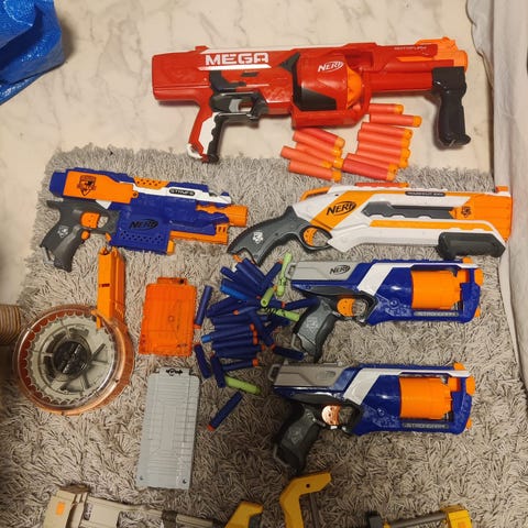 Modulus kivääri ja reilusti modeja (tähätimiä, piippuja, lippaita yms)