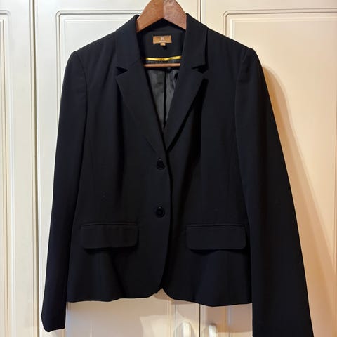 Kaunis hyvin laskeutuva juhla-asu tai virka-asu. Bleiseri koko 34 ja mekko koko 36. Ritva Falla Topper merkkinen.