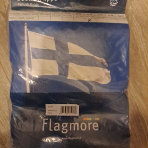 Siitä iso suomenlippu jouten, ku kaajon oman salon nurin. Heitän vaan lipun pahvii ja laitan sulle tulemaan tai nouda.