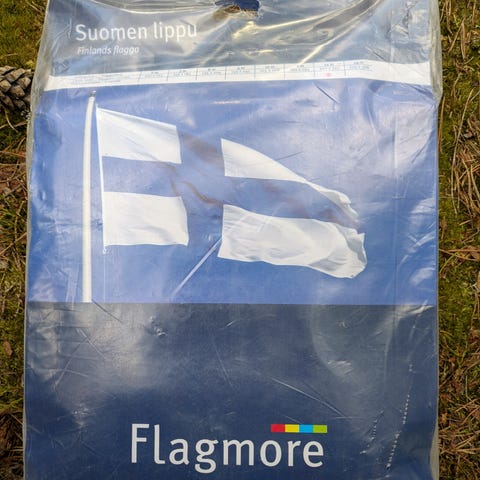 Siitä iso suomenlippu jouten, ku kaajon oman salon nurin. Heitän vaan lipun pahvii ja laitan sulle tulemaan tai nouda. Siisti on.