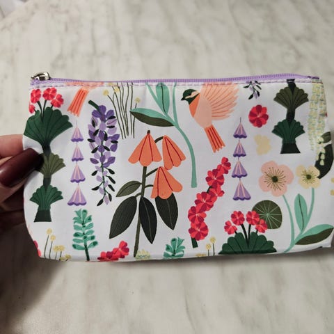 Koko 21 x 16 x 6 cm. Kauniin sininen. Siisti myös sisältä. Vetoketju kulkee hyvin. Nouto Treen keskusta Sokos tai Ratina.