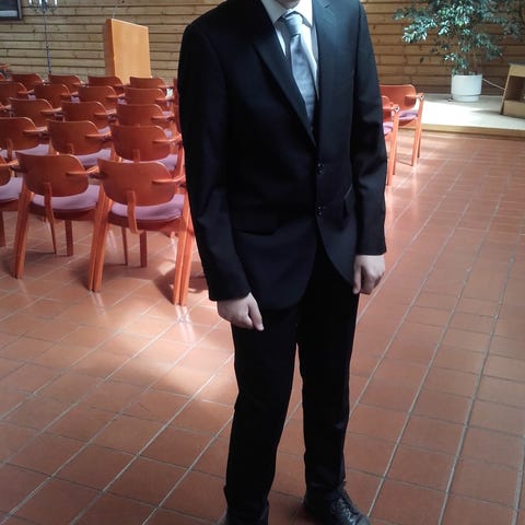 Dressmannista ostettu hyväkuntoinen puku, kokoa M, housut kokoa 34/32