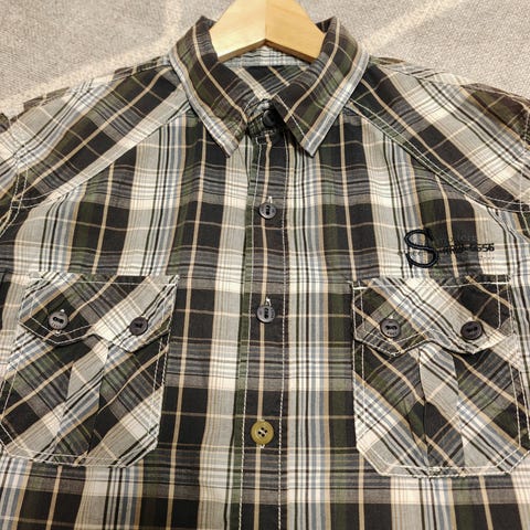 Tummanharmaa joka tilanteen kauluspaita. Kauluksen taitteessa ja olassa hieman haalistumaa, silsi varmuuden varalta ”kohtalainen”, vaikka siisti ja hyvä on silti. 100 % puuvillaa, varanapit tallessa.