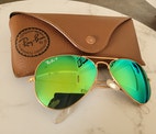 Myydään kuvan mukaiset Ray-Ban Aviator Pilotti Aurinkolasit vihreillä linsseillä samaan hintaan mukaan tulee myös kotelo (ohv synsamilla 123,20€)
