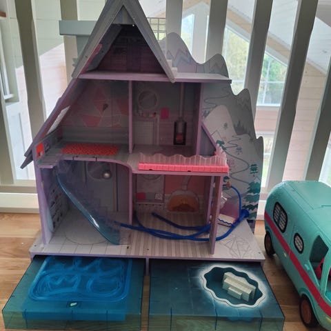 Hiihtohissi poikki ja vaatii korjausta/liimausta. Myös pattereita pitää vaihtaa, jotta saa kaikki valot toimimaan.