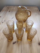 Kaunis mehusetti. Kannu ja 6 juomalasia hyvässä kunnossa. Nouto vain Roihuvuoresta.
