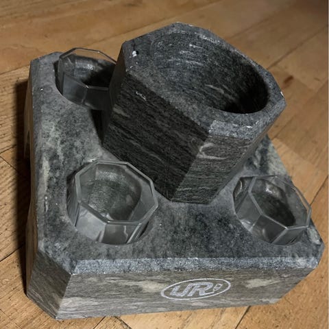 Kotimainen shottisetti 6 kpl vuodelta 1972. Leima 925 tinaa.