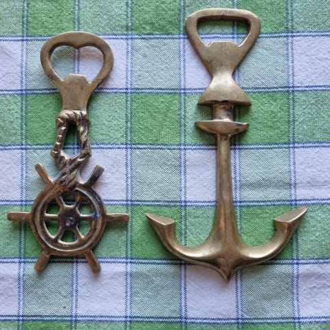 Kullan värinen pullonavaaja miesfiguurilla.