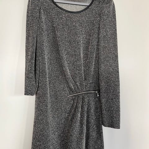 Hyväkuntoinen tummansininen mekko toimistoon tai vapaa-ajalle. Edessä taskut ja mahdollisuus pujottaa vyö