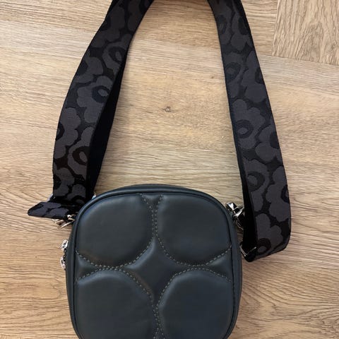 Muutaman kerran käytetty musta Marimekko Baby Gratha kivet-laukku.