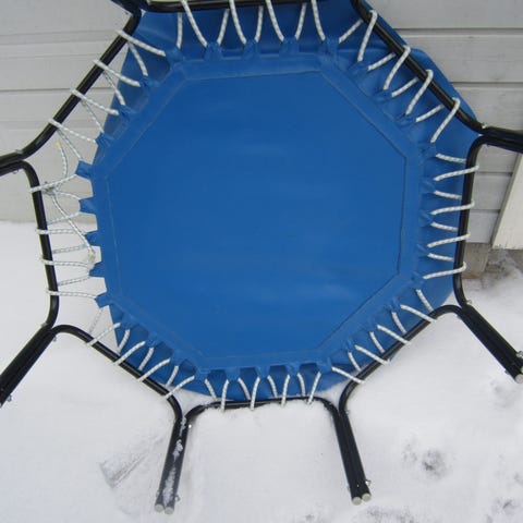 Myydään hyväkuntoinen trampoliini tarpeettomana. Halkaisija 380cm. Vahva sinkitty runko 45mm teräsputkea. Käyttäjän paino max. 100kg. Talvet säilytetty autotallissa, muutamat viime vuodet ollut käyttämättömänä. Turvaverkkoa ei ole. Sininen reunasuojus auringossa haalistunut mutta ehjä. On koottuna ja voi tulla koehyppimään.