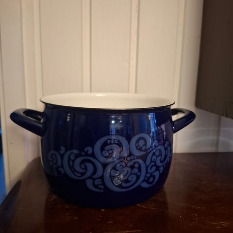 Suuri käyttökelpoinen ja erittäin hyväkuntoinen ikäisekseen oleva Finel emalikattila. Tilavuus n. 2,3l. Vanha alkuperäinen Wärtsilän versio omalla kannella, pohjassa painokirjaimet Wärtsilä Finel - Suomi Finland.