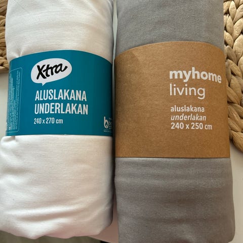Kaksi uutta aluslakanaa paketeissaan