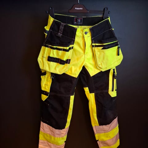 Myydään ehyet housut, joitain pientä kulumista kankaan pinnassa voi olla. Matala vyötärö. Lahkeissa nepparisäätö. Aikaisempi omistaja pessyt todennäköisesti hajusteellisella pesuaineella, koska joku tuoksu näissä on.