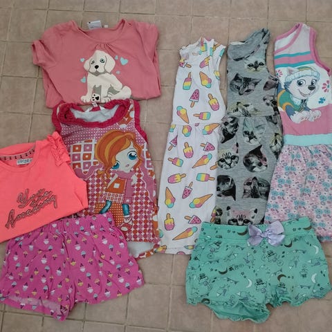 Kesäinen vaatepaketti kokoa 110-116. Kesätakki Holly&Whyte, t-paidat, pyörälegginsit.