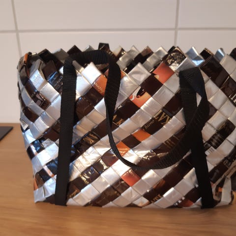 Pieneen tilaan menevä kesto kauppakassi. Vetoketjulla menee lompakon kokoiseksi.