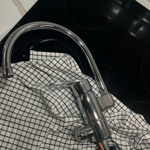 Uusi avattussa paketissa keittiöhana kaarevalla juoksuputkella.