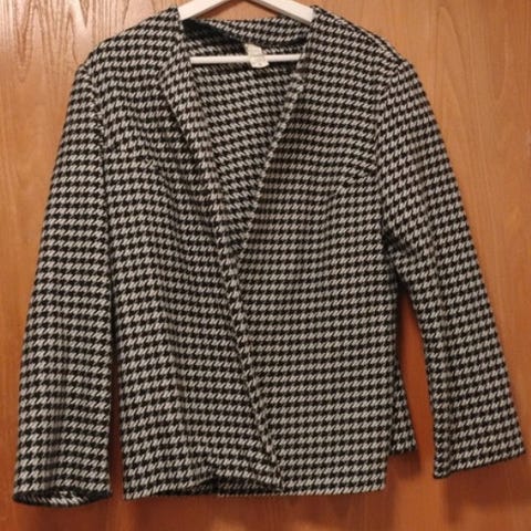 Musta puuvillatrikoo jakku, vajaamittaiset hihat.