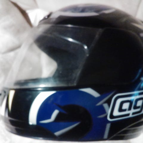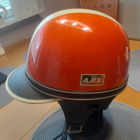 Kiiltävä pintainen, koko n.60, siisti, tekstiä leukahihnassa: E3, 0453497-081954 Made in Italy