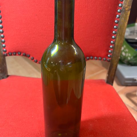 2 hienoa lasipulloa, vihreä korkeus 35,5 cm. pohjaleveys 11 cm, ruskea korkeus 30 cm, pohjaleveys 12 cm