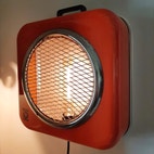 Alkuperäisen oranssi, 1900-luvun puolivälistä, oleva lämppäri, jatkaa taivaltaan Matka-Laukku-Seinä-Valaisimena. Eli pieni pala historiaa, valaisemassa huomista.