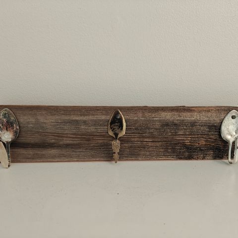 Kuvien mukainen naulakko, jossa pohja puinen , pohjalevun koko noin 27,5 cm x 9 cm