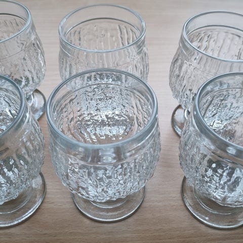 Nanny Stillin suunnittelema juomalasi, korkeus 10,5cm, halkaisija 7cm, yhteensä 11 kpl.