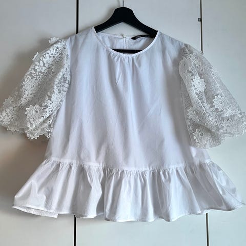 Todella kaunis pitsisomisteinen niin arkeen kuin juhlaankin sopiva pusero. Koko XL. Jäänyt kokonaan käyttämättä kun itselle pieni. Zarasta ostettu. Upea on.
