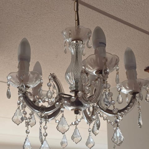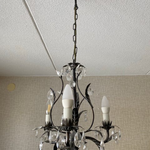 Pitkään palvellut kristallinen kattokruunu. Ollut ullakolla pitkään istumassa joten kaipaa putsausta. Muuten erittäin hyvälaatuinen ja kaunis. Teknisesti uutta vastaava, eli toimii kuin uusi.