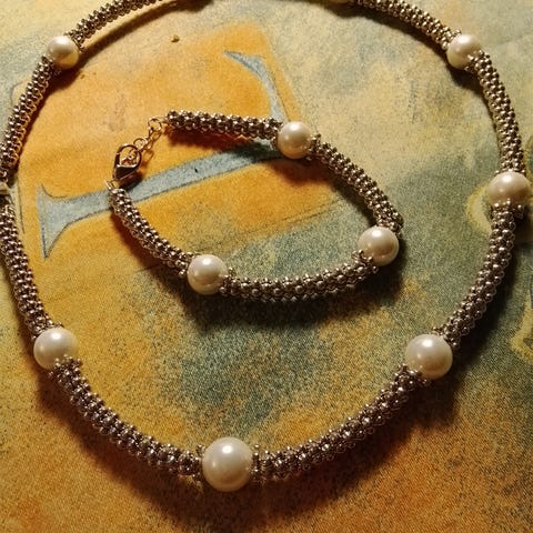 Vintage juhla kaulakoru ja rannekoru valkoiset helmet