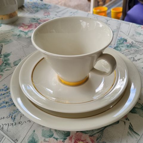 Erittäin hyväkuntoiset Arabian Harlekiini- kahvikupit 6 kpl. Tummanpunainen raita.Toridiili/ nouto.