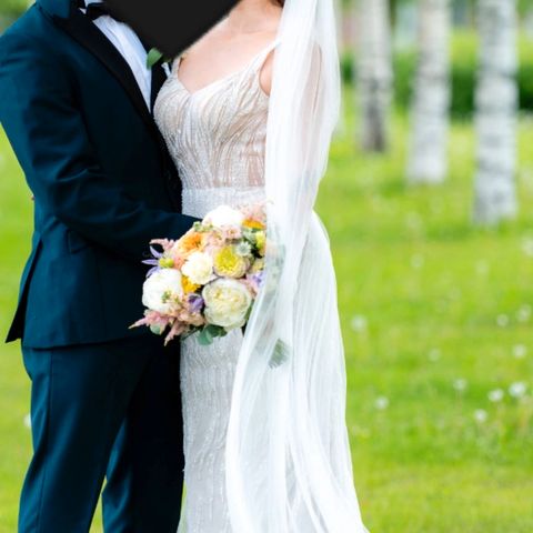 Ostettu Atelje Katariinasta. Ylä- ja alaosa eri mekoista yhdistetty. Ivory värinä. Kaunis napitus ylhäältä alas asti ja ihana laahus. Ompelijalla lyhennetty pituutta ja hihoja, tehty kaunis rypytys olkapäihin ja hartioilta otettu ylimäärää pois.