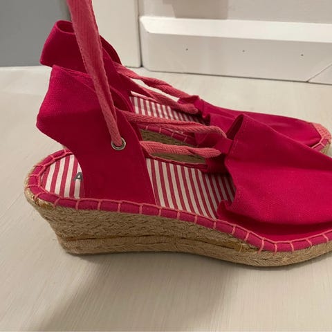 M&S punaiset espadrillo sandaalit. Remmikiinnitys. Päällinen mokkaa, sisäosa nahkaa. Koko 41.