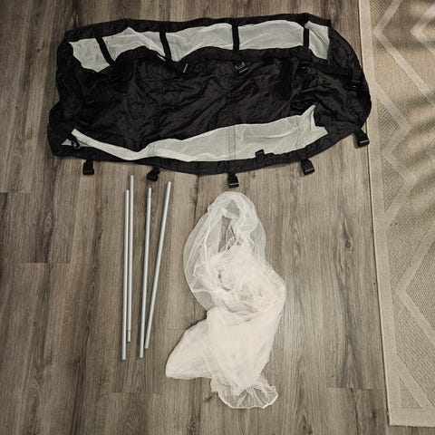 Hyväkuntoinen matkasänky.Ohut makuualusta pohjalla, patja pitää itse hommata.