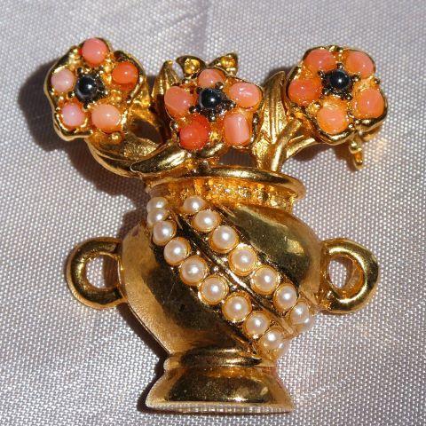 50-luvun rintakoru valkoiset kivet kukka lehti