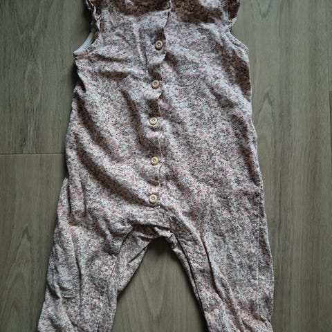 H&M vaaleanpunainen haalari. Koko 80. Haalari harsokangasta. Haaroissa nepparit ja napit edessä.