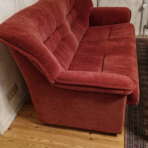 Myydään 3-istuttava sohva sekä kaksi nojatuolia. Erinomaisessa kunnossa. Ei tahroja tai kulumia. Taloudessa ei kotieläimiä. Nojatuolit 250e/kpl. Sohva 500e. Nouto Lopelta.