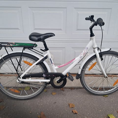 Pyörä 24 tuumaisilla renkailla. Käsijarrun jarrupalat vaihdettu kauden päätteeksi viime vuonna. Ei jalkajarruja, jonka vuoksi meillä jäi varastoon pyöräilijän halutessa jalkajarrullisen. Vaihteet: rattaita 3+7, eli 21 vaihdetta.