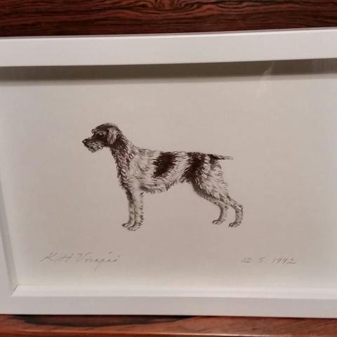 Leikkisä koira käpy hallussa. 30x40 cm. Akryylimaalaus ilman kehystä ja paspatuuria. Omaa tuotantoa.