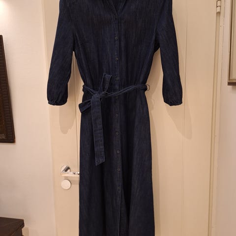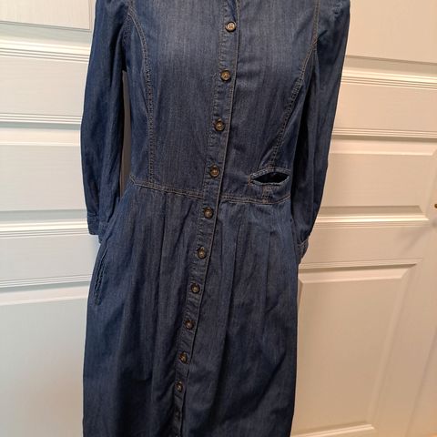 Upea täältä juuri kotiutunut (itselle harmillisesti liian iso koko) farkkumekko 1990-luvulta. Napit edessä. Yksi puuttuu, mutta sen voi korvata. Takana kiristysnarut, Taskut molemmilla sivuilla. Hyvä kunto.