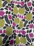 verho verhot kangas kangaspala ohut läpikuultava marimekko kesäverhot kesä omena päärynä oliivi oliivinvihreä purppura violetti lila