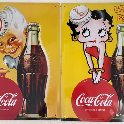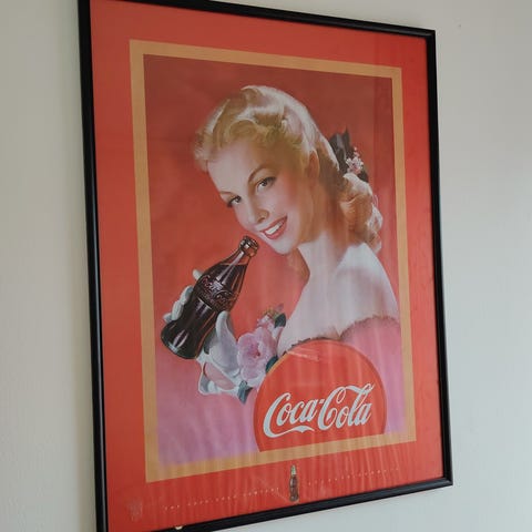 56x97cm Coca-Cola taulu, näyttäisi olevan Forumin jostain liikkeestä peräisin, tuskin aito vintage siis. Kulumaa reunoissa, sopivissa kehyksissä varmasti siisti. Vain nouto.