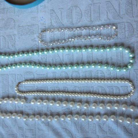 Tässä pakettina helmet ja hopeoidut korut, osa uusia.
