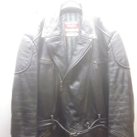 Noin 120cm rinnan ympärys ja noin 47cm hihan mitta. Aitoa nahkaa.