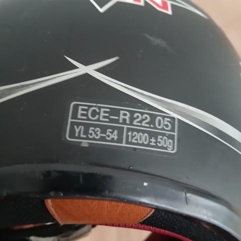 Acerbis sininen ja harmaa kypärä jossa on kiinni vanha kameran kiinnike