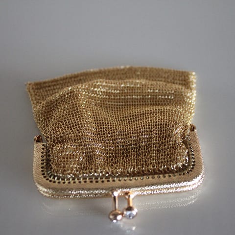 Ristipistoilla koristeltu kankainen kukkaro, koko n. 14-10cm